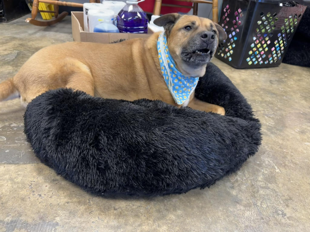 Back in September ’25 our community service committee rounded up donations to the Humane Society. Hooch here loved the bed he got. He was such a good boy!